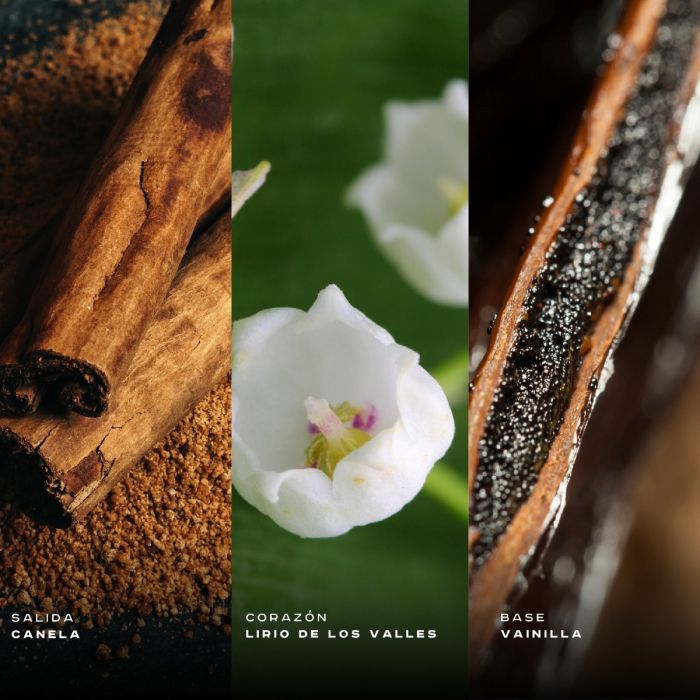 Una fragancia atrevida y provocadora que rezuma masculinidad y sensualidad. Se abre con una explosión de frescura, con notas de salida de bergamota y pera, que proporcionan una introducción fresca y vigorizante. A medida que el aroma se desarrolla, revela sus notas de corazón de menta, lavanda y canela, que agregan profundidad y complejidad a la composición.
