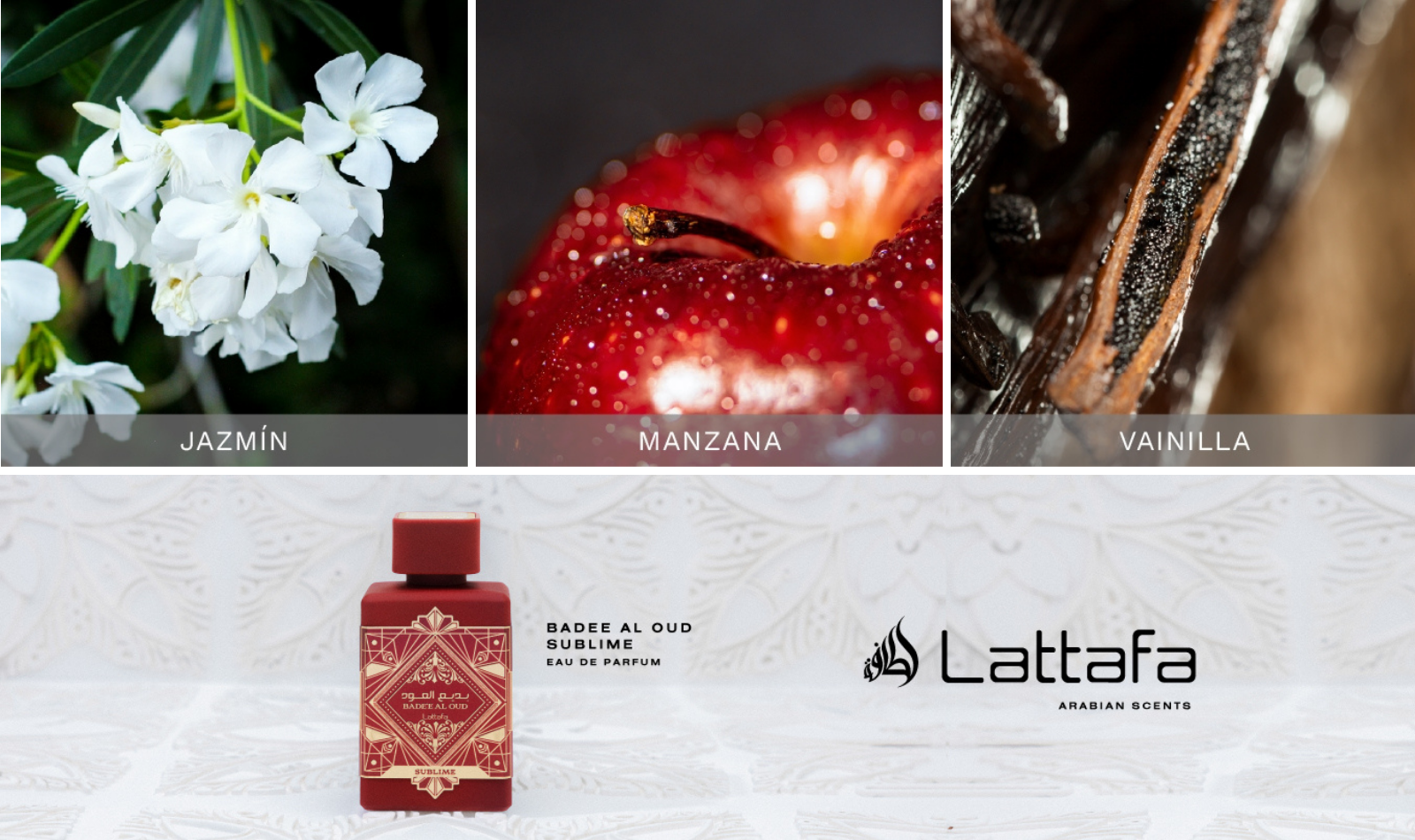 Bade'e Al Oud Sublime de Lattafa Perfumes es una fragancia aromática amaderada para mujer y hombre. Esta nueva fragancia se lanzó en 2023. Sus notas de salida son manzana, lichi y rosa; sus notas de corazón, ciruela y jazmín; y sus notas de fondo, vainilla, musgo y pachulí.