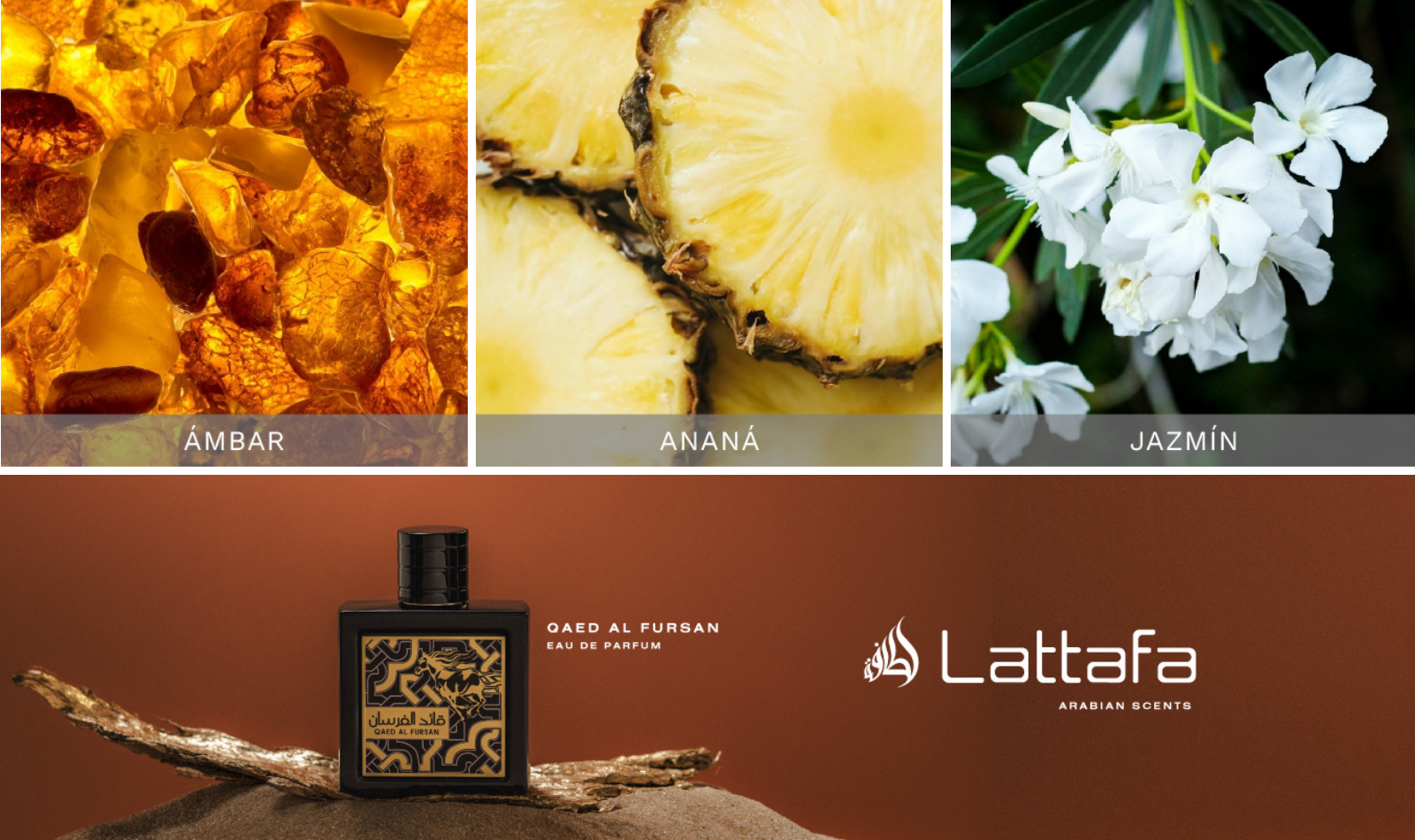 Qaed Al Fursan de Lattafa es una fragancia unisex lanzada en 2016. Se describe como un perfume oriental que evoca una sensación brillante y alegre. Sus notas de salida incluyen piña y azafrán, mientras que el corazón combina abeto balsámico y jazmín. Las notas de fondo se caracterizan por ámbar y cedro, proporcionando una base amaderada. La fragancia es conocida por su combinación de notas dulces y frutales con un trasfondo amaderado y sólido.